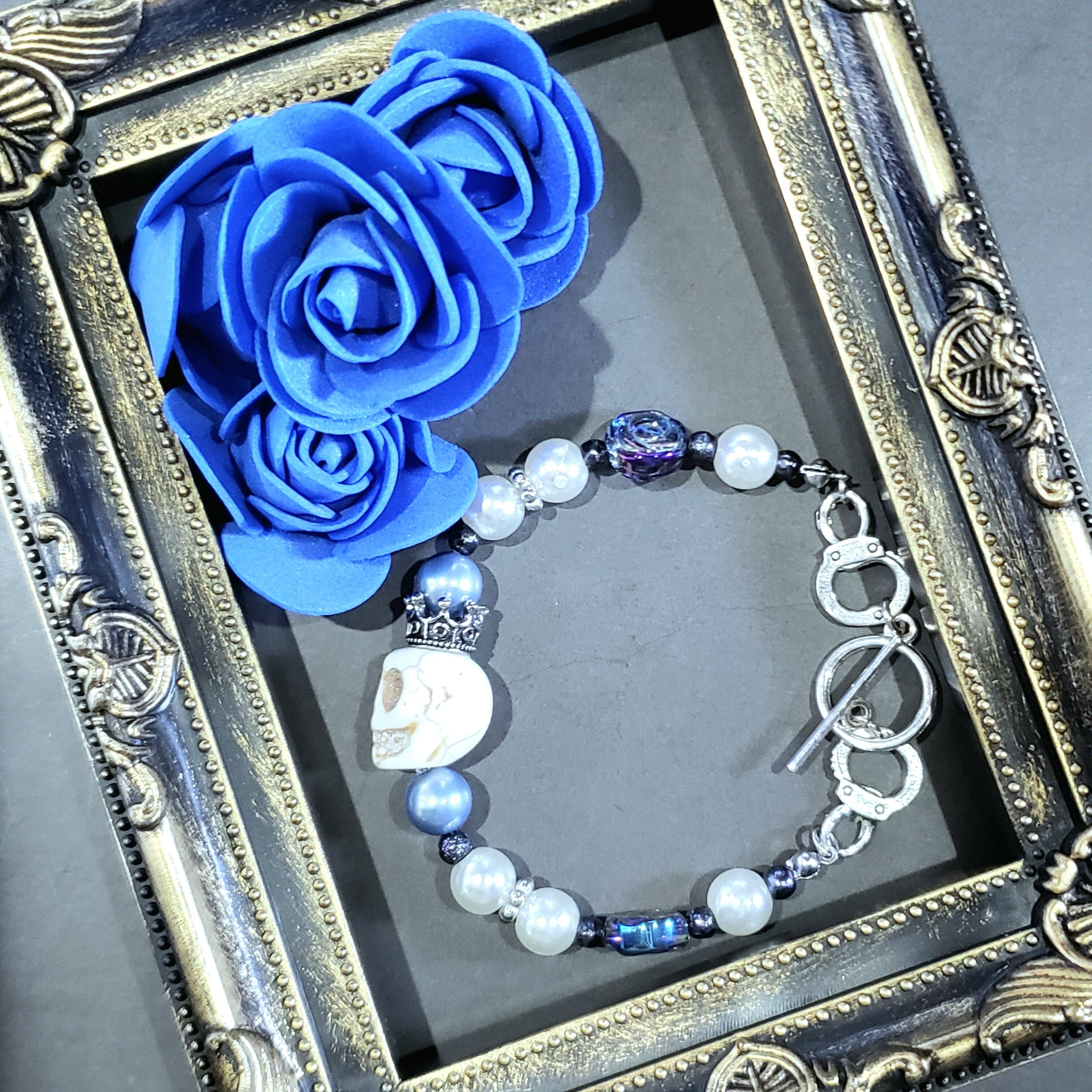 スカルと青いバラを組み合わせたパールブレスレット✩